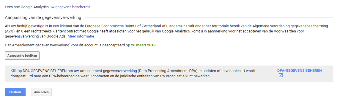 - je een bewerkersovereenkomst met Google hebt gesloten;
