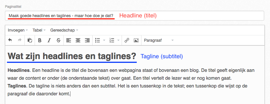 <em>Headlines staan boven elke websitepagina en blogpagina en daaronder volgen nog diverse taglines. Hoe schrijf je goede headlines en taglines en waarom is dat eigenlijk belangrijk?</em>