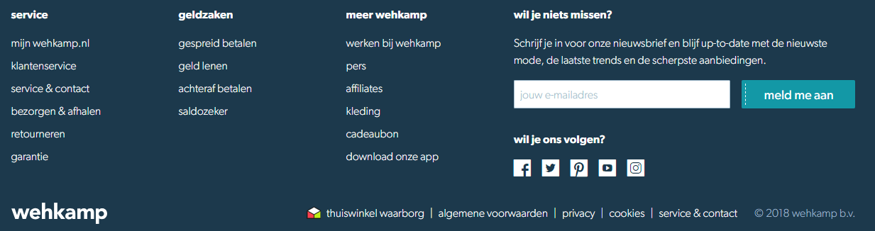 Ooit was het zo dat hoe meer links je in de footer zette, hoe beter je door Google gevonden werd. Het gevolg was dat de footer werd volgepropt met tientallen links naar je websitepagina’s. Men noemde dat ook wel de fat footer. Een groot nadeel was dat de websitebezoeker door de hoeveelheid informatie door de bomen het bos niet meer zag.